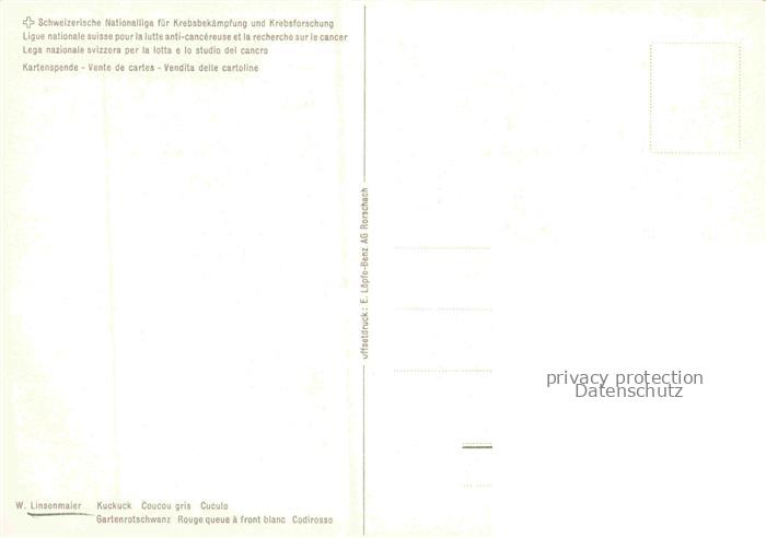 74092248 LINSENMAIER W. Kuenstlerkarte Gartenrotschwanz Kuckuck postalisch nicht gelaufen Erhaltung siehe scans [SanaeD93] KatCode: 22240000003200