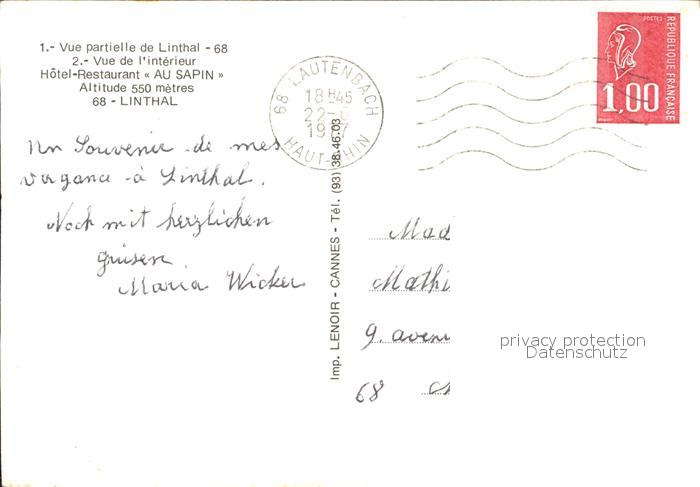 12303189 Linthal Elsass Hotel Restaurant Au Sapin KatCode 11170068368188