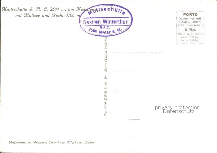 11631772 Linthal Glarus Muttseehuette am Kistenpass Muttsee und Ruchi Schutzhuette Glarner Alpen postalisch nicht gelaufen Erhaltung siehe scans KatCode: 11470090300882