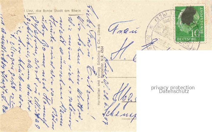 74153408 alte Postkarte LINZ DONAU AT Panorama Bunte Stadt am Rhein postalisch gelaufen Fliegeraufnahme Erhaltung siehe scans [FriedD77] KatCode: 11390312040101