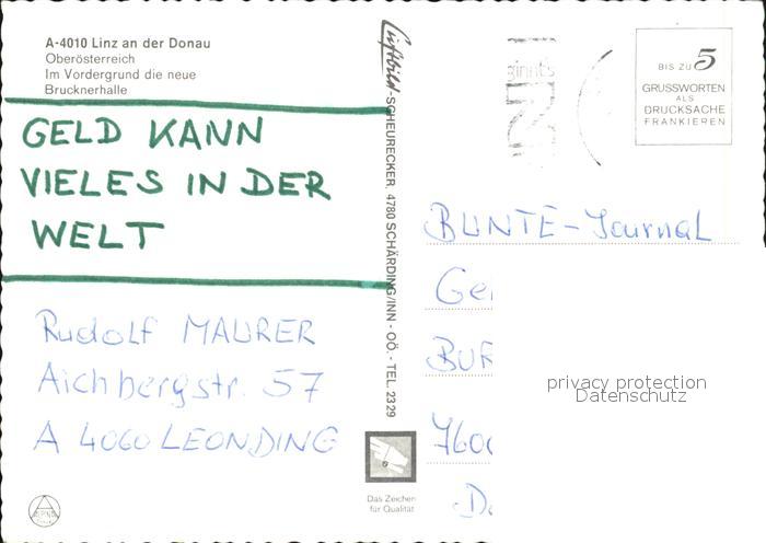 72599804 alte Postkarte Linz Donau Brucknerhalle Kirchen postalisch gelaufen Erhaltung siehe scans [FriedD77] KatCode: 11390312040101