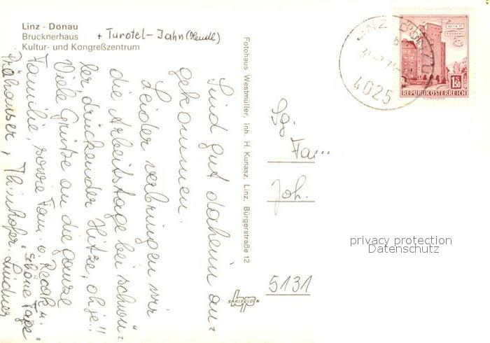 73313340 alte Postkarte Linz Donau Brucknerhaus postalisch gelaufen Erhaltung siehe scans [NatalD47] KatCode: 11390312040101