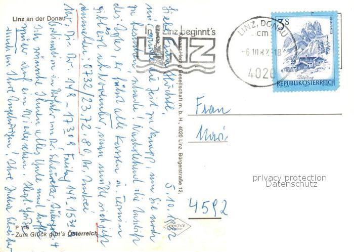 73155416 alte Postkarte Linz Donau Fliegeraufnahme postalisch gelaufen Erhaltung siehe scans [WerneD78] KatCode: 11390312040101