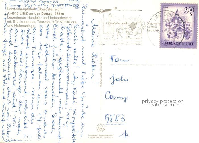 73523772 alte Postkarte Linz Donau Fliegeraufnahme Donaupartie postalisch gelaufen Erhaltung siehe scans [LiesaD40] KatCode: 11390312040101