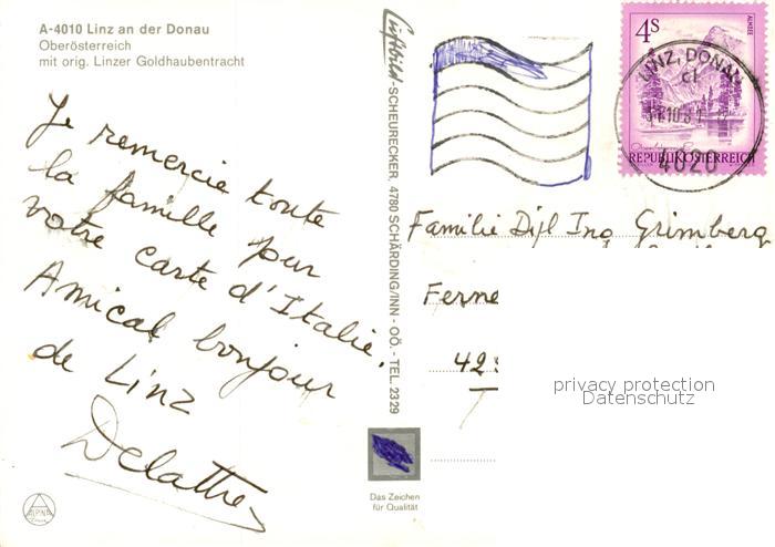 73266505 alte Postkarte Linz Donau Frauen in Linzer Goldhaubentracht Donau postalisch gelaufen Erhaltung siehe scans [LiesaD40] KatCode: 11390312040101