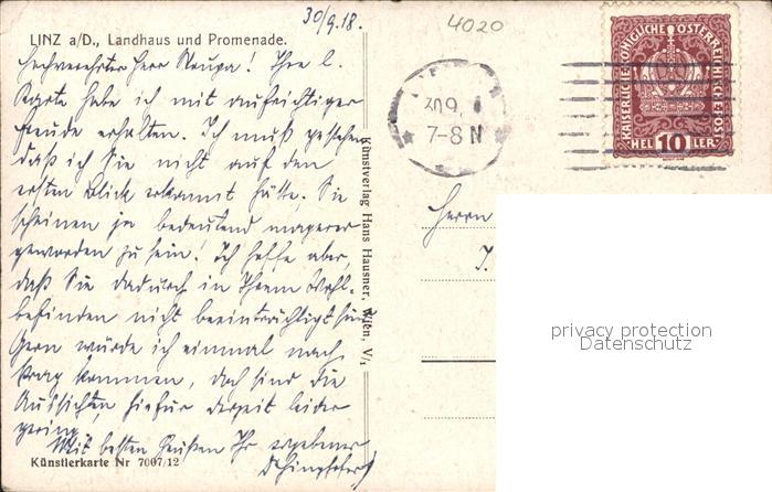 71555137 alte Postkarte Linz Donau Landhaus und Promenade Kuenstlerkarte Nr. 7007/12 postalisch gelaufen Erhaltung siehe scans KatCode: 11390312040101