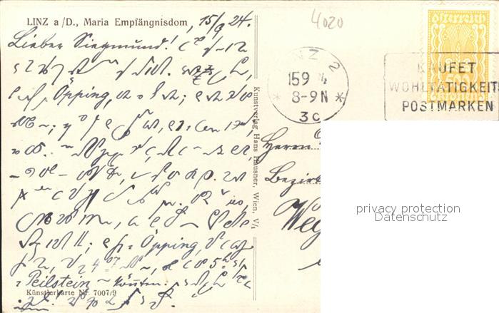 71555127 alte Postkarte Linz Donau Maria Empfaengnis Dom Baumbluete Kuenstlerkarte Nr. 7007/9 postalisch gelaufen Erhaltung siehe scans KatCode: 11390312040101