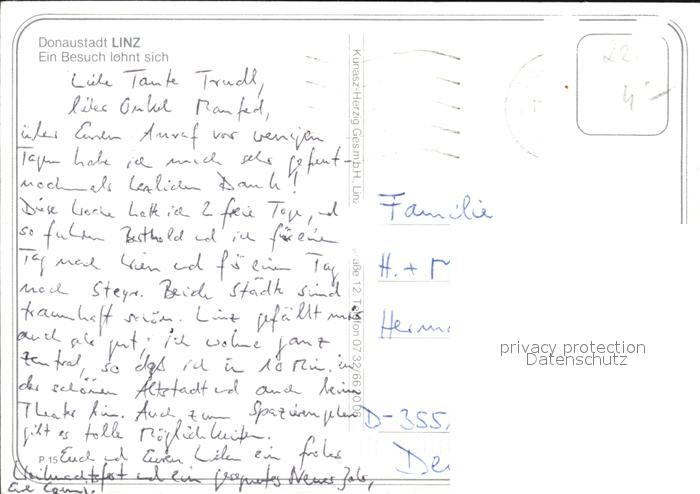 72455522 alte Postkarte Linz Donau Panorama Poestlingberg Wallfahrtsbasilika Hauptplatz Alter Dom Pestsaeule postalisch gelaufen Erhaltung siehe scans KatCode: 11390312040101
