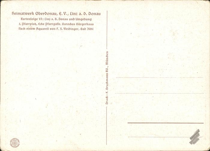 11093769 Linz Donau Pfarrplatz Barockes Bürgerhaus Künstlerkarte KatCode 11390312040101