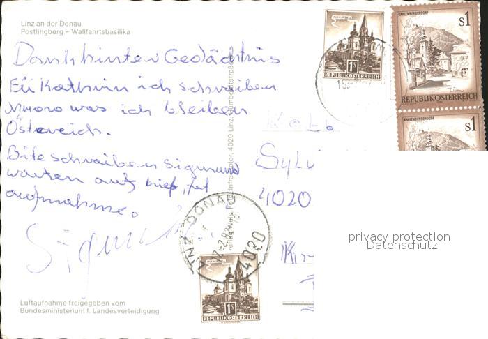 72072095 alte Postkarte Linz Donau Postlingberg Wallfahrtsbasilika Fliegeraufnahme postalisch gelaufen Erhaltung siehe scans KatCode: 11390312040101