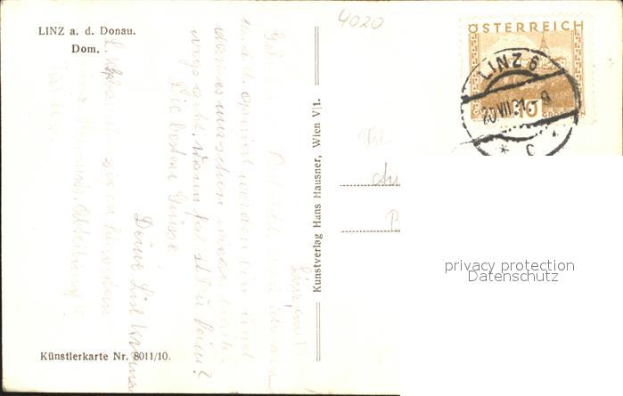 71555110 alte Postkarte Linz Donau Stadtansicht mit Dom Kuenstlerkarte Nr. 8011/10 postalisch gelaufen Erhaltung siehe scans KatCode: 11390312040101