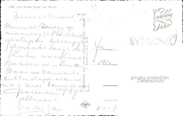 72163913 alte Postkarte Linz Rhein postalisch gelaufen Erhaltung siehe scans KatCode: 11110007138041