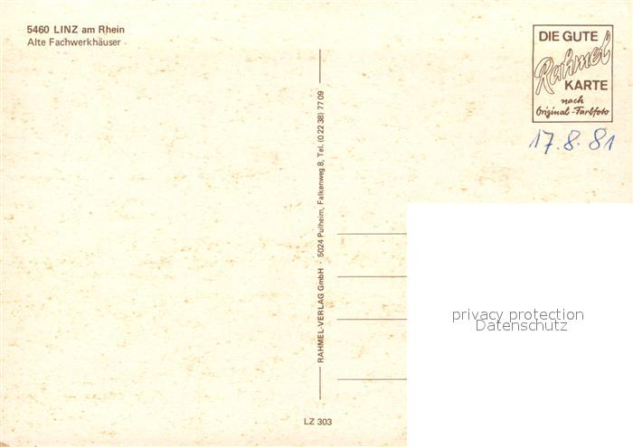 73176568 Linz Rhein Alte Fachwerkhaeuser postalisch nicht gelaufen Erhaltung siehe scans [KathaD81] KatCode: 11110007138041