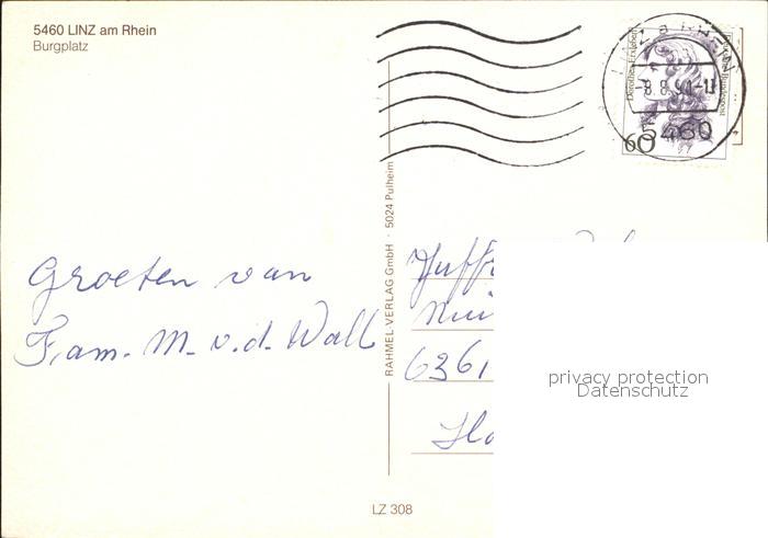 72305183 alte Postkarte Linz Rhein Burgplatz postalisch gelaufen Erhaltung siehe scans KatCode: 11110007138041
