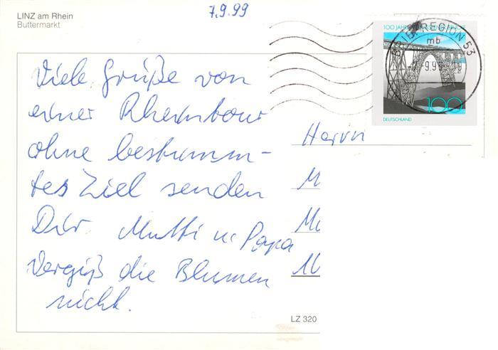73880662 alte Postkarte Linz Rhein Buttermarkt postalisch gelaufen Erhaltung siehe scans [WerneD78] KatCode: 11110007138041