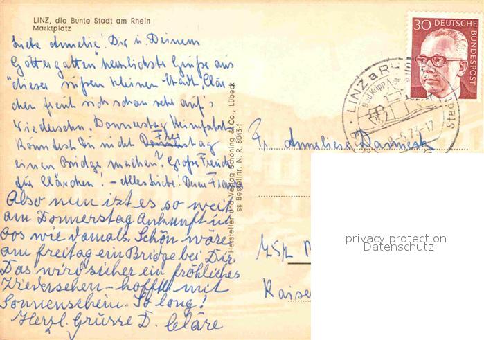 72656886 alte Postkarte Linz Rhein Marktplatz postalisch gelaufen Erhaltung siehe scans [AndreD76] KatCode: 11110007138041