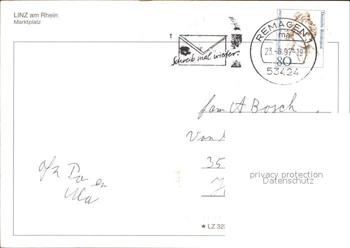 72255366 alte Postkarte Linz Rhein Marktplatz mit Brunnen postalisch gelaufen Erhaltung siehe scans KatCode: 11110007138041