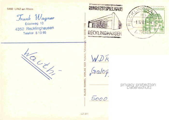 72725468 alte Postkarte Linz Rhein Partie am Fluss Fontaene Fachwerkhaus Hotel Restaurant postalisch gelaufen Erhaltung siehe scans [FriedD77] KatCode: 11110007138041