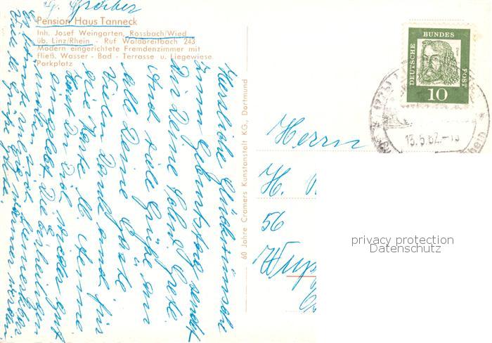 73845173 alte Postkarte Linz Rhein Pension Haus Tanneck postalisch gelaufen Erhaltung siehe scans [WerneD78] KatCode: 11110007138041