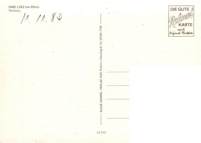 73894250 Linz Rhein Rathaus postalisch nicht gelaufen Erhaltung siehe scans [FriedD77] KatCode: 11110007138041