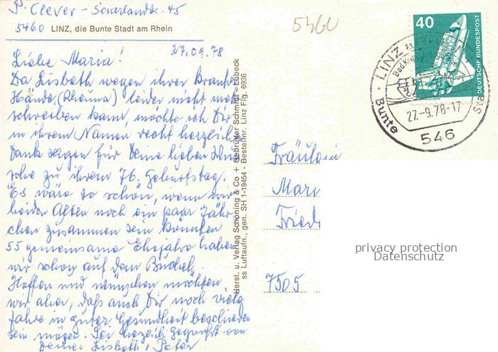 74050171 alte Postkarte Linz Rhein Rheinland-Pfalz Fliegeraufnahme postalisch gelaufen Erhaltung siehe scans [WerneD78] KatCode: 11110007138041