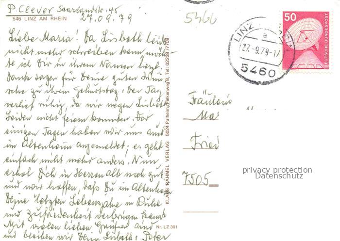 74050169 alte Postkarte Linz Rhein Rheinland-Pfalz Rheinpromenade Burg Ockenfels Neustrasse Rheinstrasse Park postalisch gelaufen Erhaltung siehe scans [WerneD78] KatCode: 11110007138041