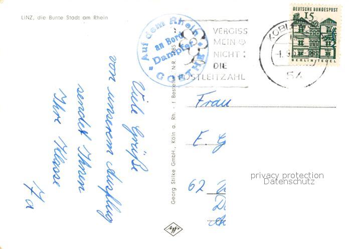 73163380 alte Postkarte Linz Rhein Rheinpartie postalisch gelaufen Erhaltung siehe scans [LiesaD40] KatCode: 11110007138041