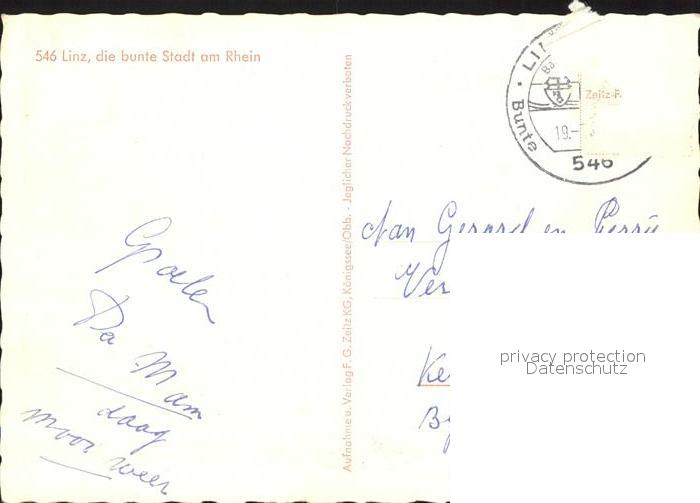 72389864 alte Postkarte Linz Rhein Strassenpartie postalisch gelaufen Erhaltung siehe scans KatCode: 11110007138041