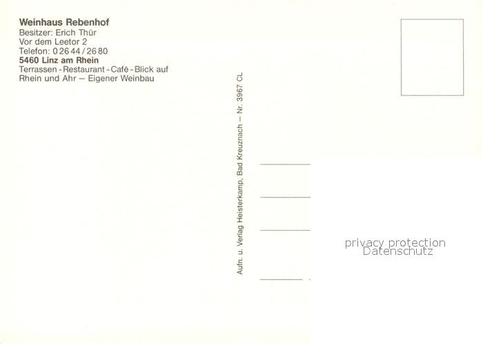 73334878 Linz Rhein Weinhaus Rebenhof postalisch nicht gelaufen Erhaltung siehe scans [LiesaD40] KatCode: 11110007138041