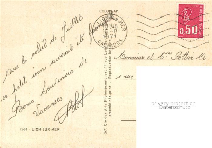 13662306 Lion-sur-Mer La Digue et la Plage Le Chateau Les Faloises Tanagra Maison des Enfants Salle des Fetes Villa Vista postalisch gelaufen Erhaltung siehe scans [WerneD78] carte postale Wern Katcode 11170014214365