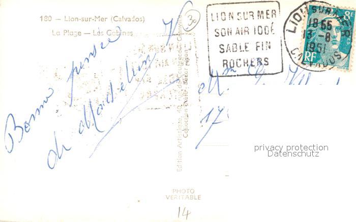 13494346 carte postale Lion-sur-Mer La Plage Les Cabines postalisch gelaufen Erhaltung siehe scans [WerneD78] KatCode: 11170014214365