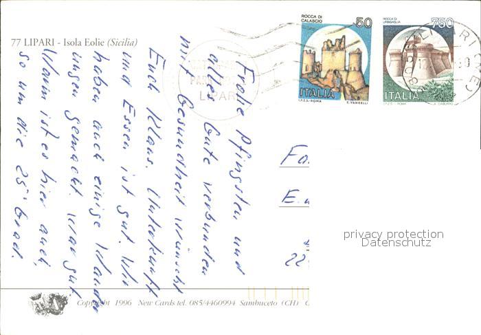 old postcard Lipari Isole Eolie Hafen postalisch gelaufen Erhaltung siehe scans