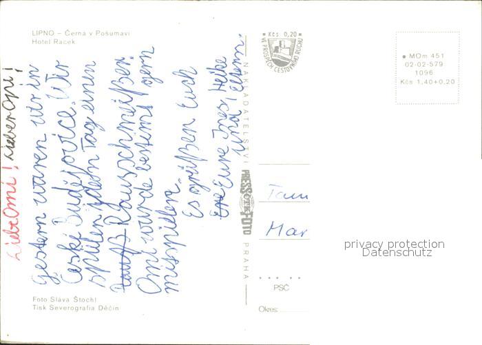 Lipno Hotel Racek postalisch nicht gelaufen Erhaltung siehe scans