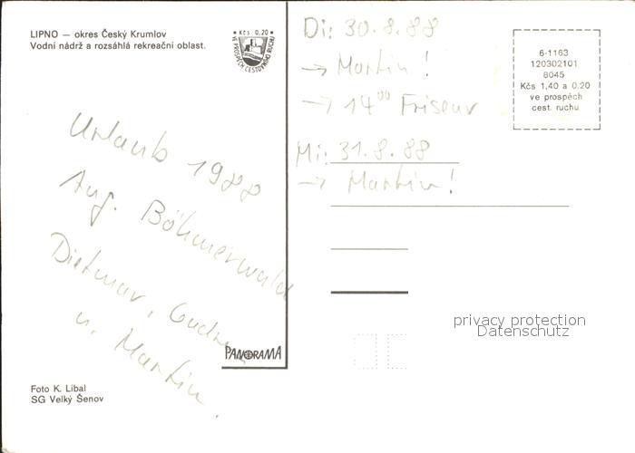 Lipno Okres Cesky Krumlov Vodni nadrz a rozsahla rekreacni oblast postalisch nicht gelaufen Erhaltung siehe scans