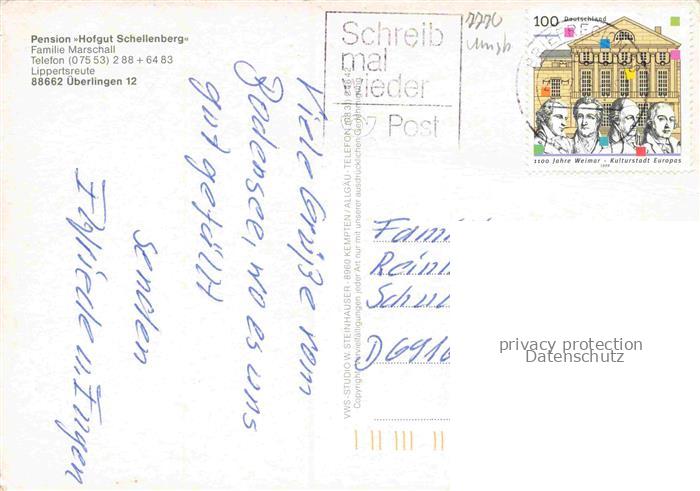Lippertsreute ueberlingen BW Hofgut Schellenberg Restaurant Panorama Fernsicht postalisch gelaufen Erhaltung siehe scans [FriedD77] alte Postkarte Frie Katcode 11110008435059