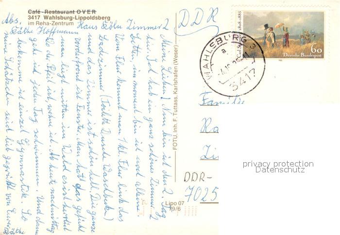 73648675 alte Postkarte Lippoldsberg Cafe Restaurant Reha-Zentrum Kegelbahnen Fliegeraufnahme postalisch gelaufen Erhaltung siehe scans [FriedD77] KatCode: 11110006633027