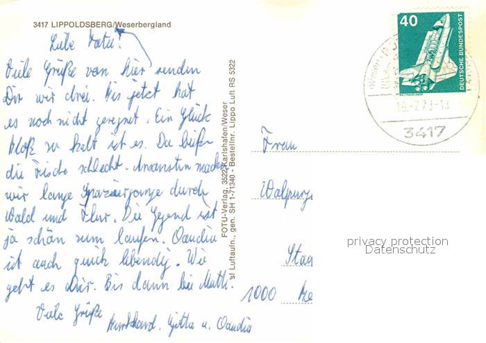 72840047 alte Postkarte Lippoldsberg Fliegeraufnahme Weserbergland postalisch gelaufen Erhaltung siehe scans [LiesaD40] KatCode: 11110006633027