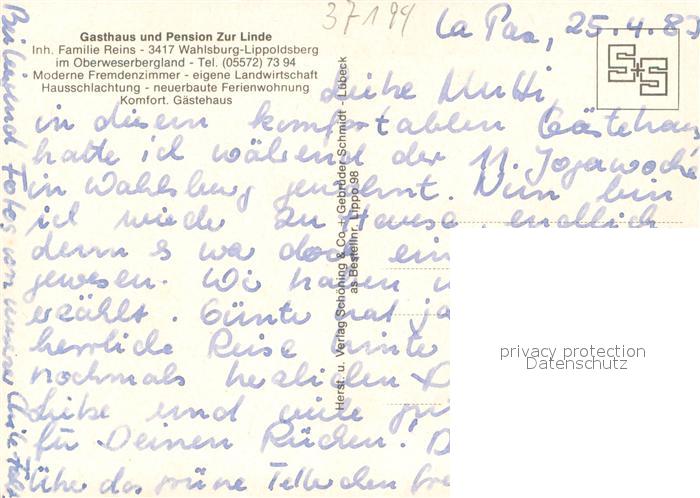 73662575 Lippoldsberg Gasthaus Pension zur Linde Gaststube Fremdenzimmer postalisch nicht gelaufen Erhaltung siehe scans [FriedD77] KatCode: 11110006633027