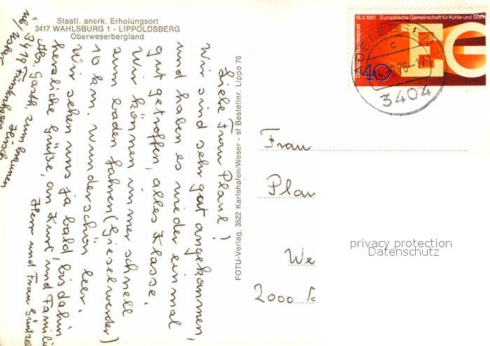 72656892 alte Postkarte Lippoldsberg Kirche postalisch gelaufen Erhaltung siehe scans [AndreD76] KatCode: 11110006633027