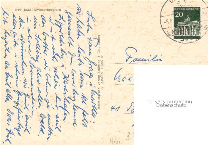 73673019 alte Postkarte Lippoldsberg Panorama postalisch gelaufen Erhaltung siehe scans [WerneD78] KatCode: 11110006633027
