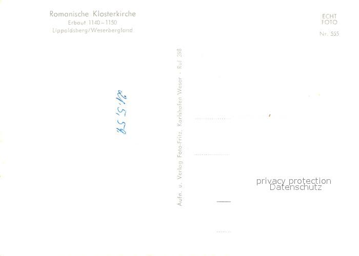 73097397 Lippoldsberg Romanische Klosterkirche postalisch nicht gelaufen Erhaltung siehe scans [KathaD81] KatCode: 11110006633027