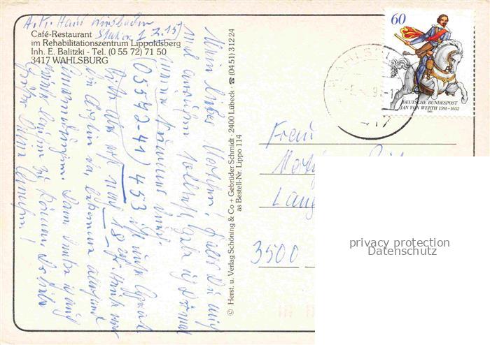 74100718 alte Postkarte Lippoldsberg Wahlsburg Hessen Café Restaurant Reha-Zentrum Kegelbahn postalisch gelaufen Erhaltung siehe scans [FriedD77] KatCode: 11110006633027