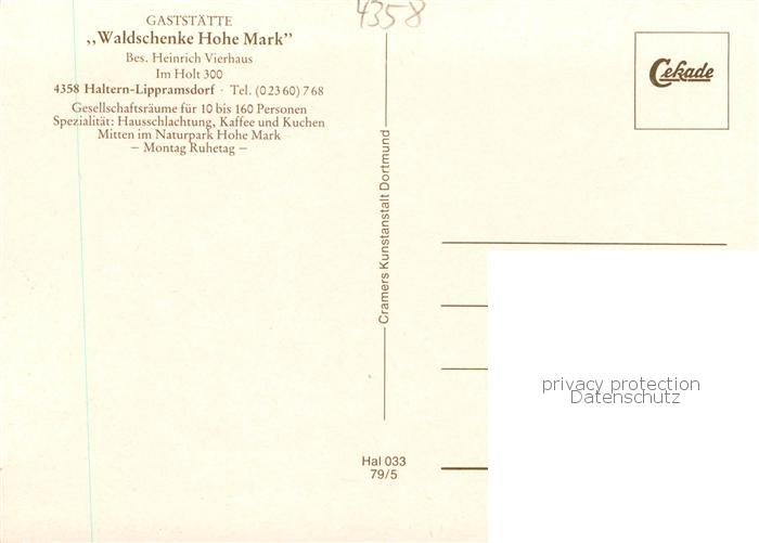 73870231 Lippramsdorf Gaststaette Waldschenke Hohe Mark Freiterrasse Gastraeume postalisch nicht gelaufen Erhaltung siehe scans [WerneD78] KatCode: 11110005562016