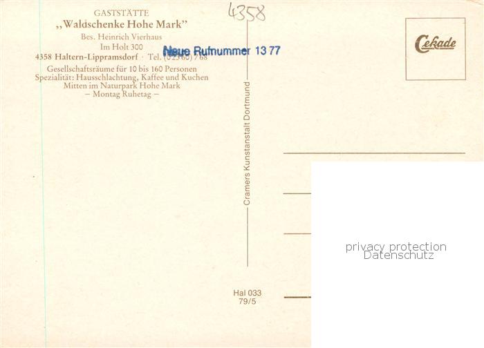 73870456 Lippramsdorf Gaststaette Waldschenke Hohe Mark Gastraeume Terrasse postalisch nicht gelaufen Erhaltung siehe scans [WerneD78] KatCode: 11110005562016
