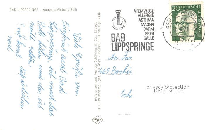 73096948 alte Postkarte Lippspringe Bad Augusta Victor Stift Fliegeraufnahme postalisch gelaufen Erhaltung siehe scans [KathaD81] KatCode: 11110005774008