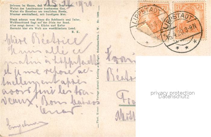 43489337 alte Postkarte Lippstadt Aus Altwestf?lische Bauernh?user B?uerinnen in der Wohnk?che postalisch gelaufen Erhaltung siehe scans [LiesaD40] KatCode: 11110005974028