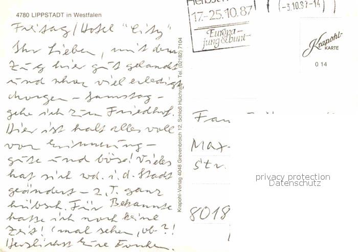 72656909 alte Postkarte Lippstadt Bernhard Brunnen Jakobi Kirche Fussgaengerzone Goldener Hahn postalisch gelaufen Erhaltung siehe scans [AndreD76] KatCode: 11110005974028