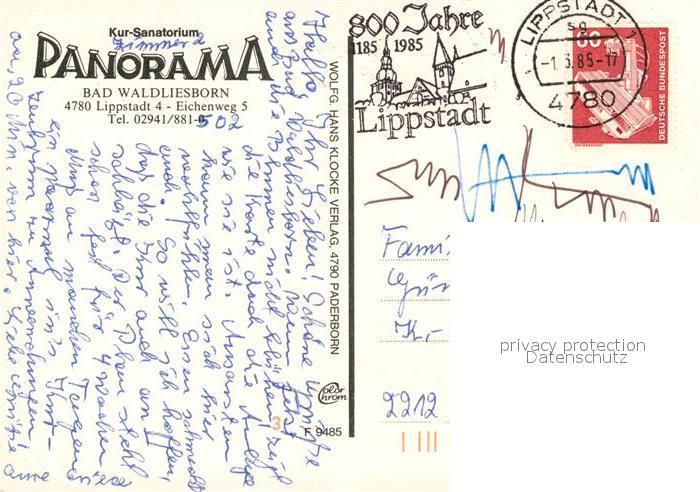 73167886 alte Postkarte Lippstadt Kursanatorium Panorama Bad Waldliesborn Schwimmbad postalisch gelaufen Erhaltung siehe scans [LiesaD40] KatCode: 11110005974028
