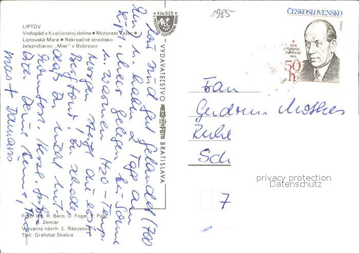 old postcard Liptov Liptau Wasserfall Partie am See postalisch gelaufen Erhaltung siehe scans