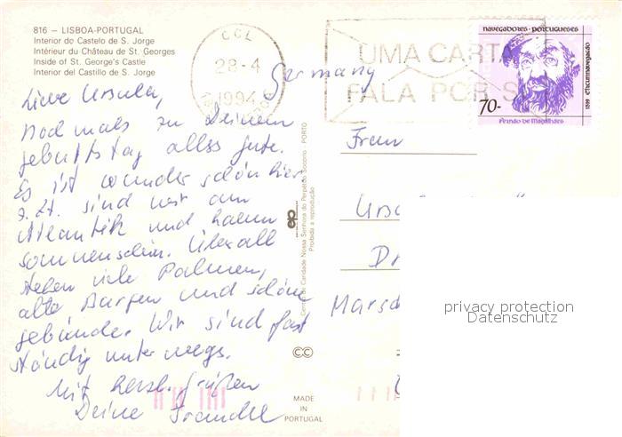 old postcard Lisboa Castelo de S. Jorge postalisch gelaufen Erhaltung siehe scans [LiesaD40]